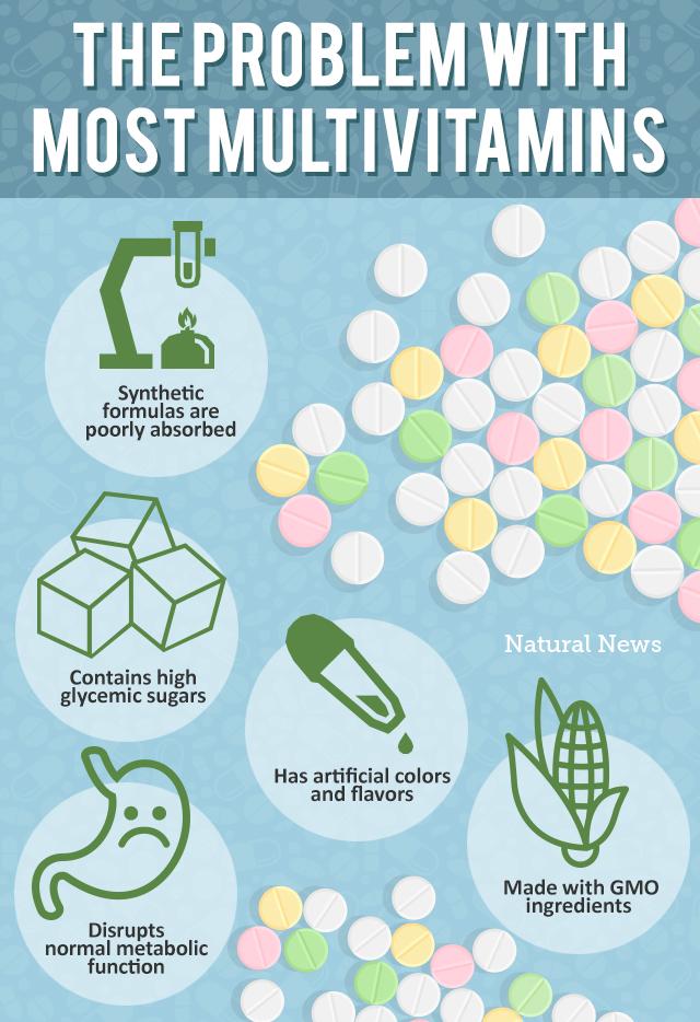 First of all, let’s deal with the lion’s share of multivitamins being sold on the shelves, which are synthetic versions that contain a laundry list of isolated vitamins and minerals. These multivitamins may look good on paper, but inside your body, nothing can be further from the truth.